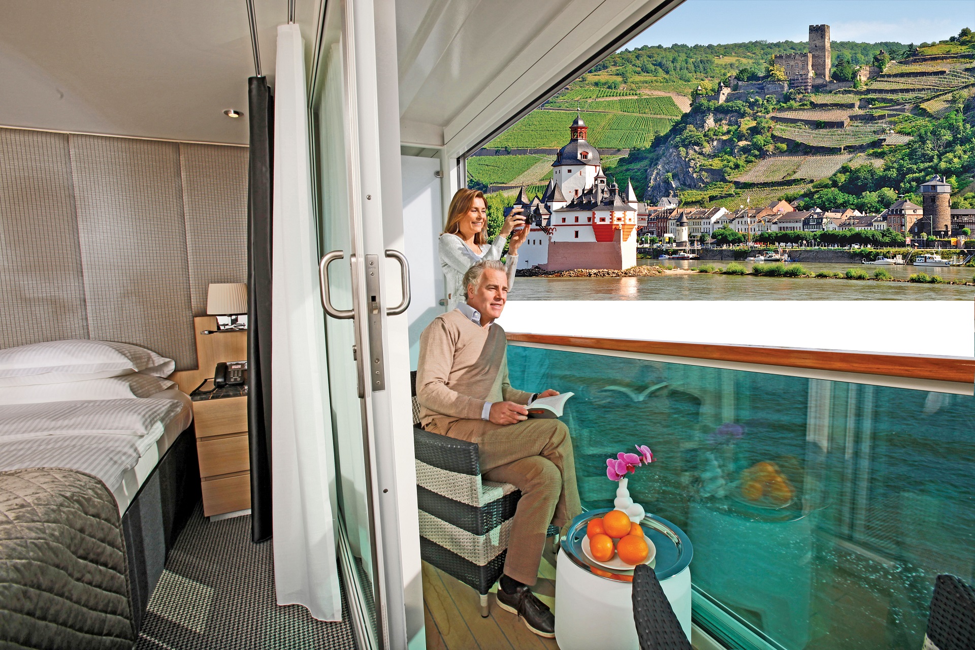 Contrary to some other river cruise ships, Scenic Crystal has fully extendible balconies in almost all passenger cabins, rather than the more conventional French balcony cabins. Metaglas has provided the passenger cabins with vertical sliding windows. The window consists of two glass panels of which the top panel slides down. This way, when opening the panels you create a glass balustrade and the glass conservatory is transformed into a balcony.