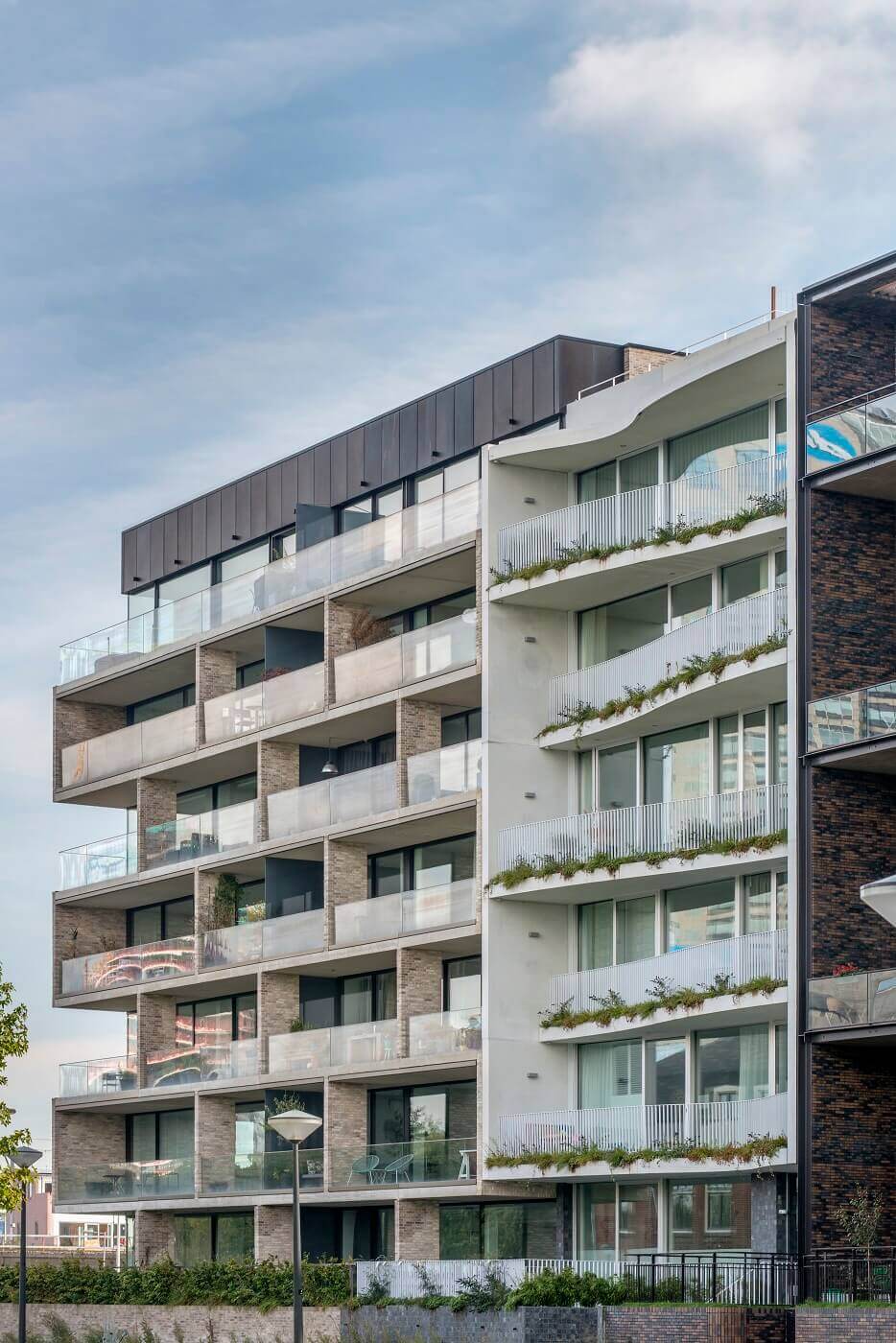 Esthetiek speelt ook een belangrijke rol in de zuidwestelijke gevel van het appartementencomplex. Dat is de gevel met balkons die een prachtig panorama geeft op de nabije Amstel. Op voorspraak van de architect koos de bewonersgroep in meerderheid voor diverse oplossingen van Metaglas, onder meer Methermo®XL-ramen en -deuren en het MHS-schuifraam. Gipser: “De kwaliteit en slanke profilering van de producten gaven de doorslag.” Hij vertelt dat enkele bewoners aanvankelijk een minder ‘luxe’ oplossing voorstonden, maar dat inmiddels iedereen is gevallen voor de elegante profilering en het strakke design van de Metaglas-producten. Wat wil je ook met zo’n uniek uitzicht, vanuit je droomhuis.