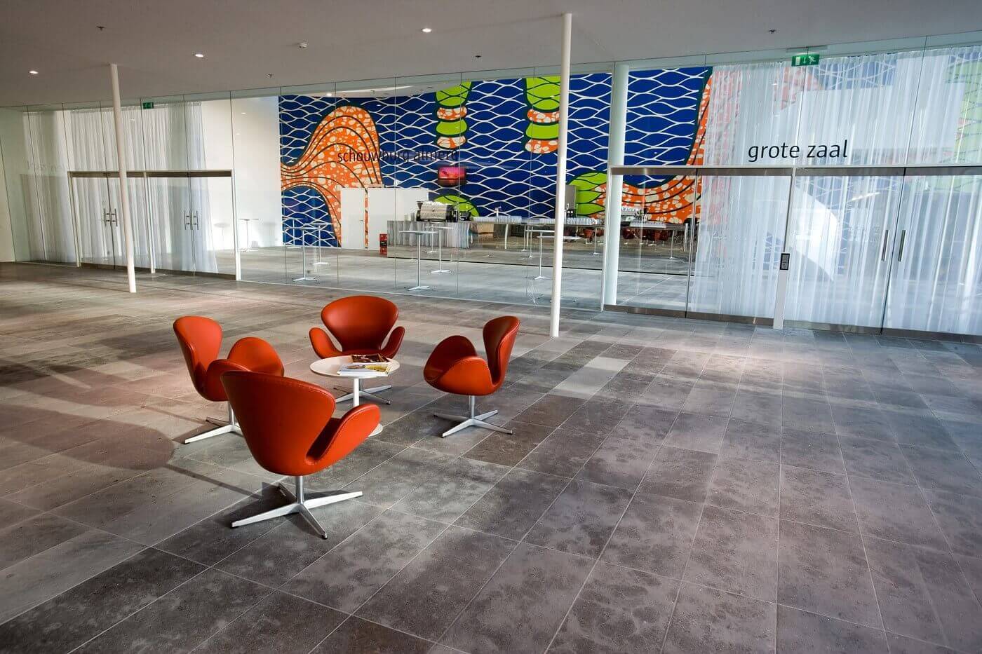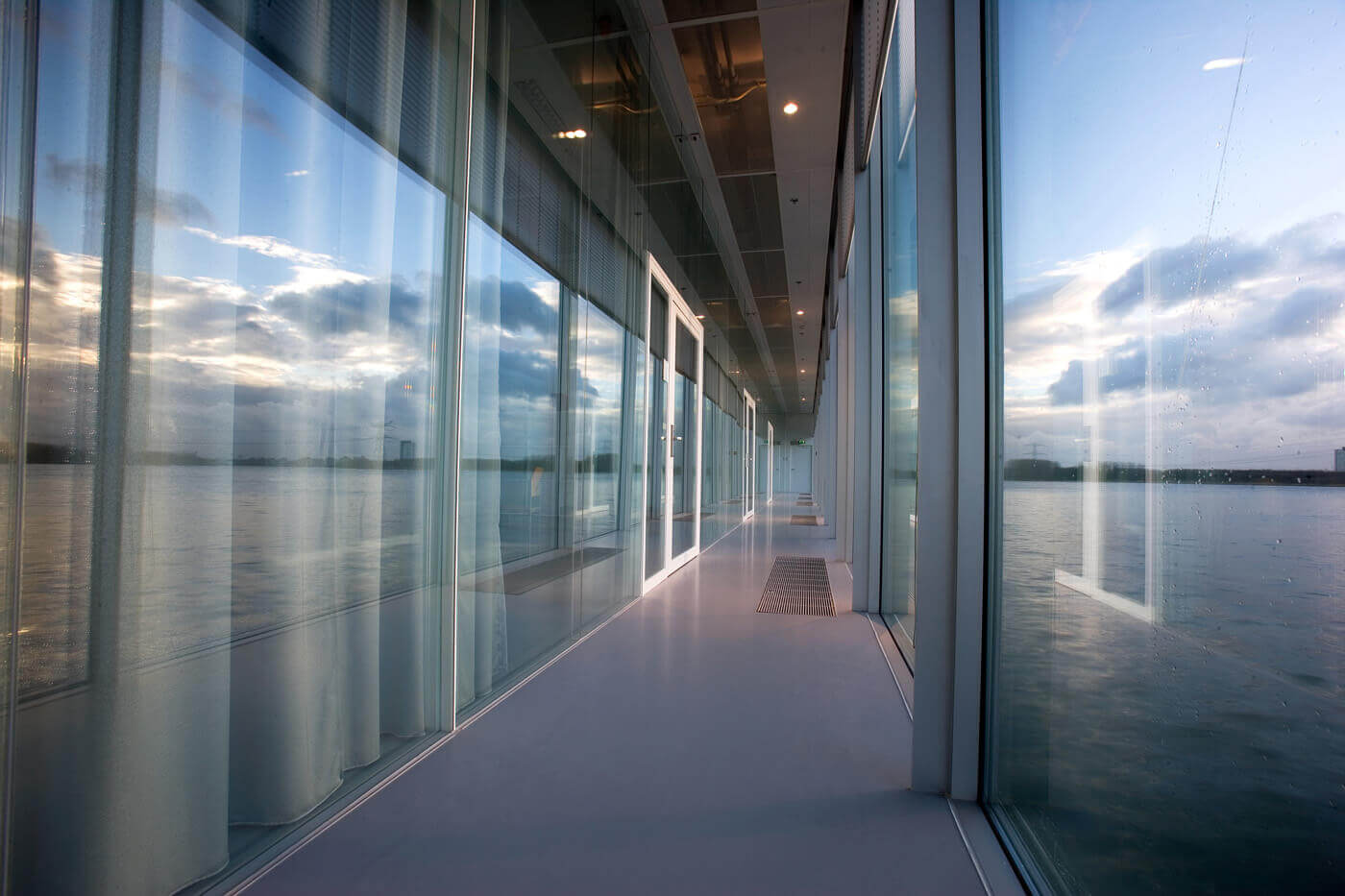 Vanwege de variëteit aan activiteiten is waar nodig gekozen voor extra geluidsisolerende glazen wanden. Gyuszi Florian: ‘Met name rond de muziekruimten zijn speciaal door Metaglas ontwikkelde dubbele glaswanden met brede spouw toegepast. Het meest innovatieve aspect aan deze wanden valt waarschijnlijk het minst op: de transparante afstandhouders tussen de panelen. Ze zijn van zichzelf al vrijwel onzichtbaar. En dan is de kleur ook steeds nog aangepast aan de kleur van het vlak waarop ze aansluiten. Over transparantie gesproken! Typisch zo’n extraatje dat de architectonische kwaliteit en de bijzonderheid van het gebouw benadrukt.’