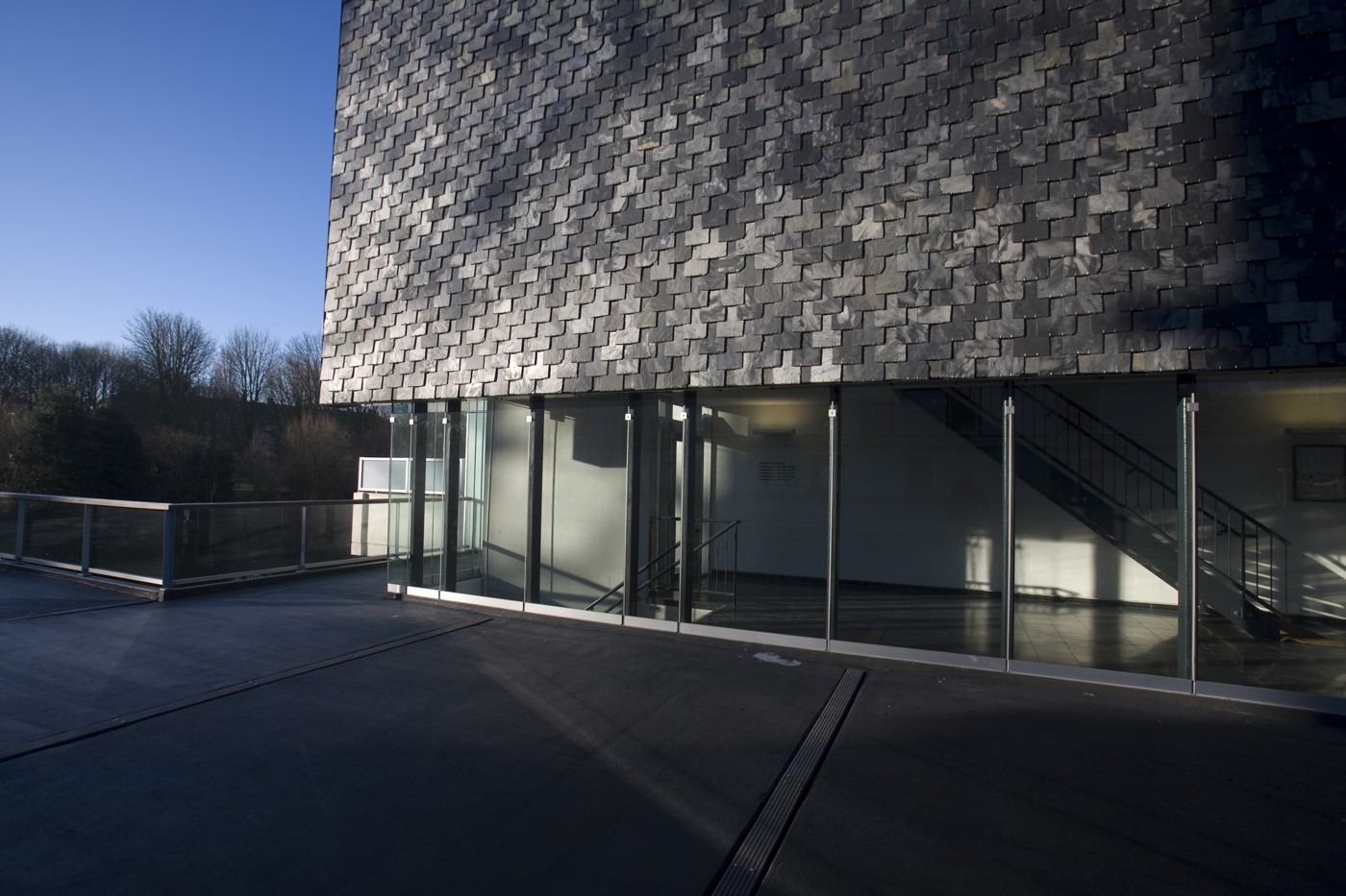 Langs deze ‘Esplanade’ vormen langgerekte houten trappen de overgang naar het dek waarop de torens en blokken staan. Daaronder ligt de parkeergarage. Alewijnse: ‘Bijna alle voordeuren en ingangen komen uit op de Esplanade. Dat geeft levendigheid. De treden en bomen versterken dat: je kunt er even lekker gaan zitten.’