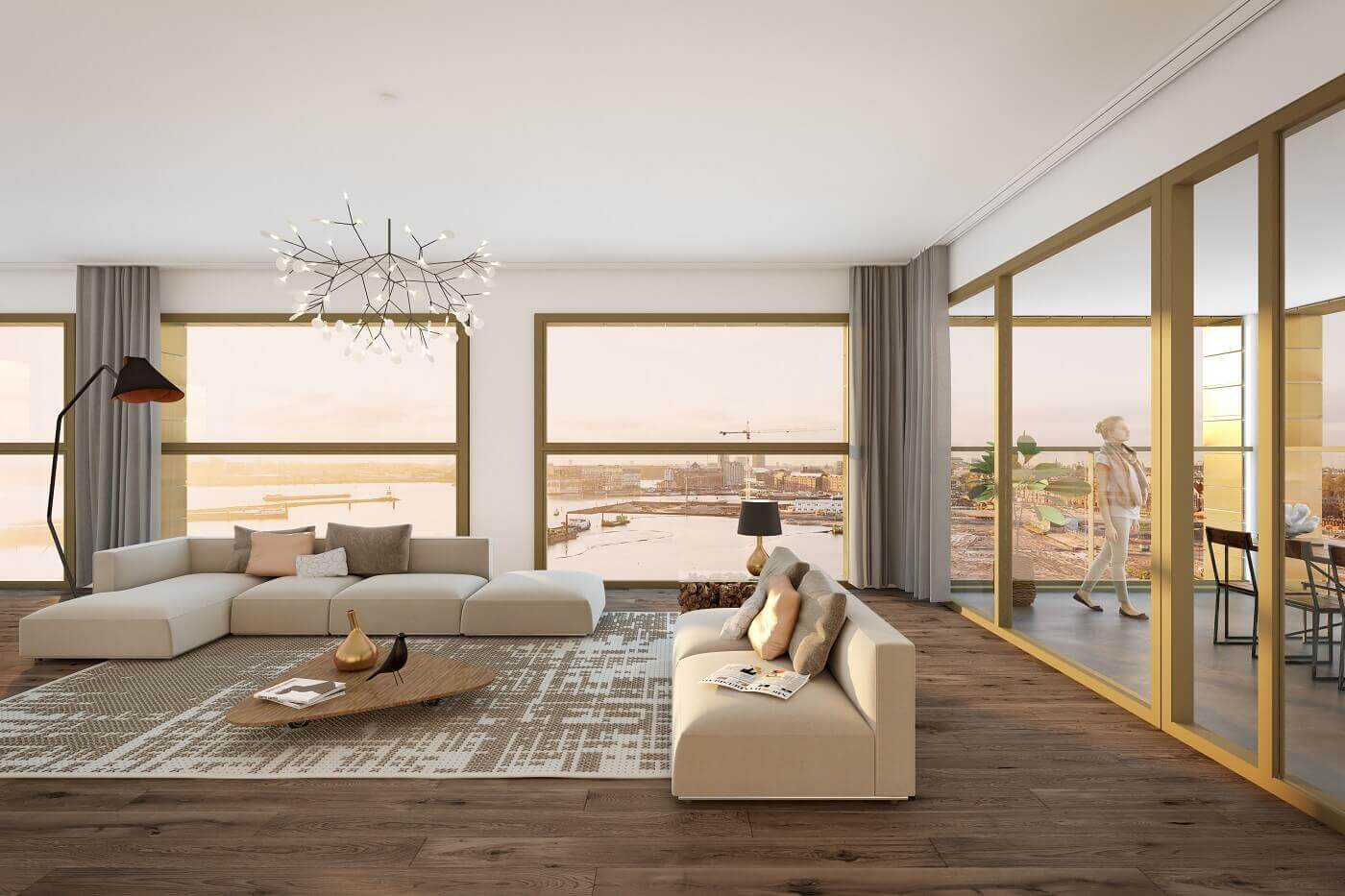 De immense MethermoXL verticaal schuivende ramen worden elektrisch bediend en kunnen allemaal gelijktijdig worden geopend. De bovenste glaspanelen zakken naar beneden waardoor het appartement in een mega-balkon verandert met glazen balustrade. Doordat de volledige verdiepingshoogte van drie meter wordt benut, blijft het middenprofiel van de ramen altijd onder ooghoogte. De schuiframen van het hogere penthouse bestaan als enige uit drie delen zodat ook daar de zichtlijn vrij blijft.