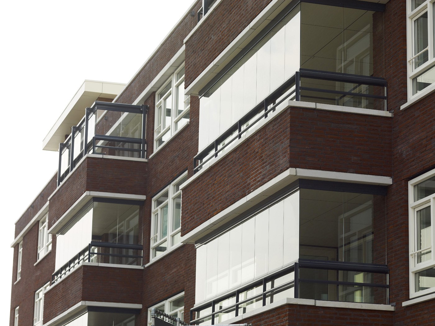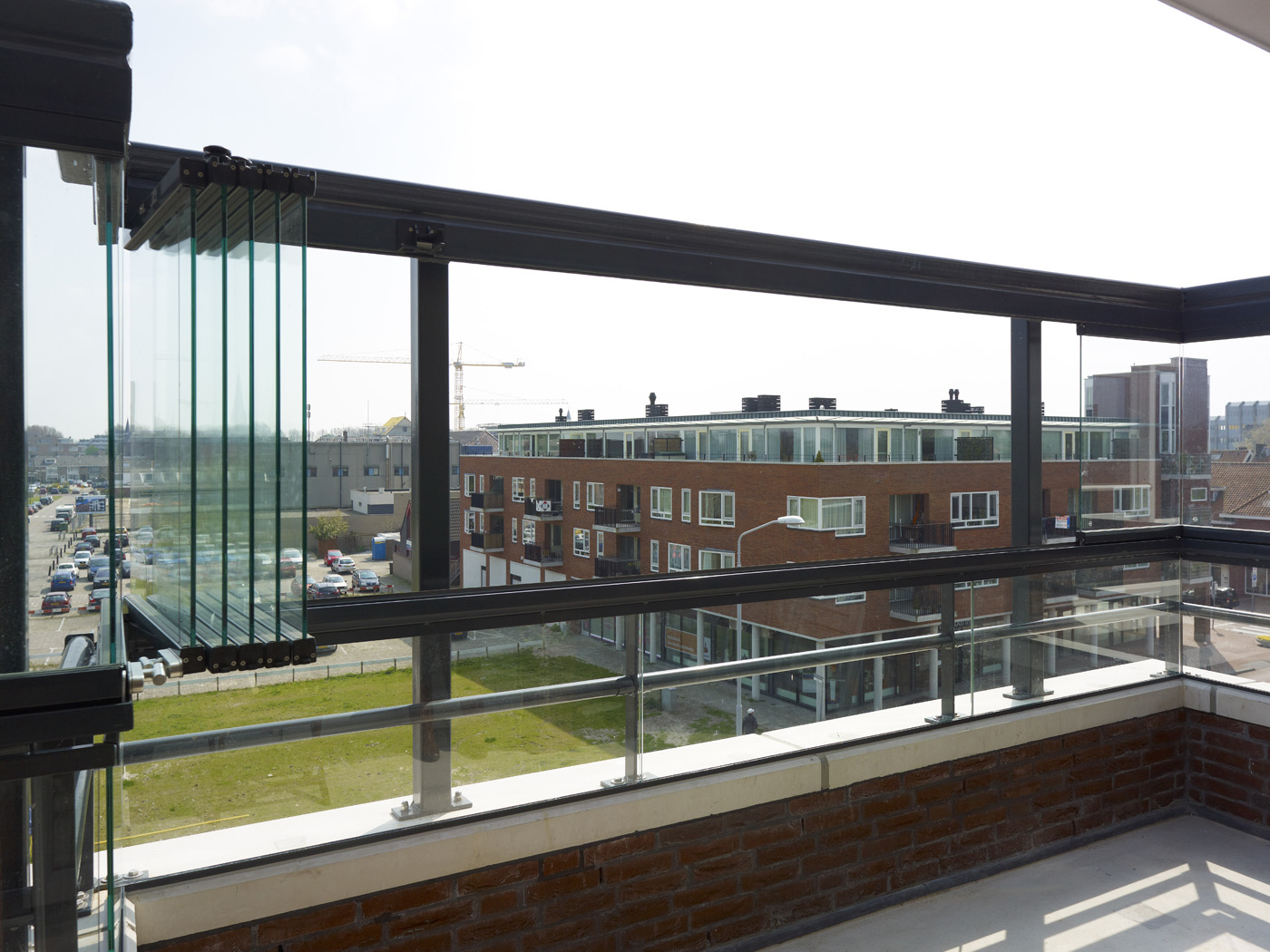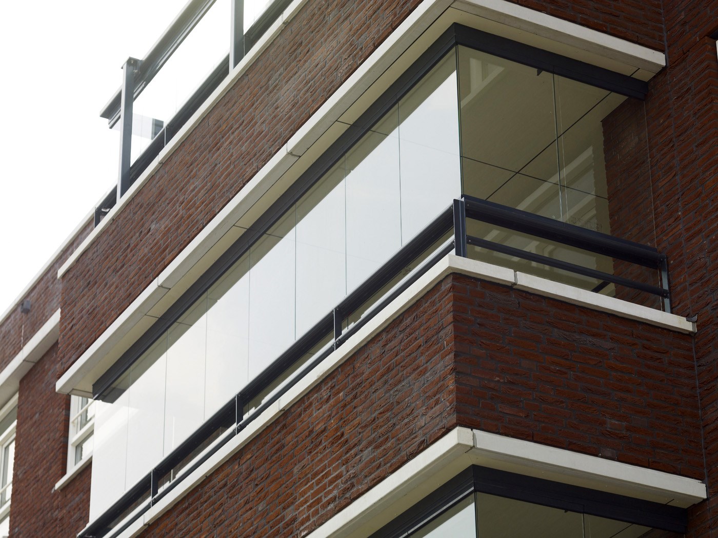Deze – later ingebrachte – eis stelde hem wél voor de uitdaging het glas zo elegant mogelijk in te passen in het oorspronkelijke slanke bouwontwerp. Dat is goed gelukt, vindt hij. ‘De mensen van Metaglas hebben goed meegedacht. De horizontale lijnen van de stalen balustrade onderstrepen de horizontale belijning van de balkons. Het glas aan de binnenzijde van de balustrade om ook deze winddicht te maken, is mooi in de oplossing meegenomen.’ Content is de architect met de hoogwaardige afwerking van de appartementen. ‘Alles ziet er mooi, ruim en licht uit. En dat in een binnenstedelijk gebied waar het altijd woekeren met de ruimte is.’