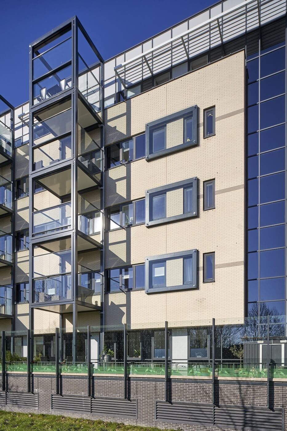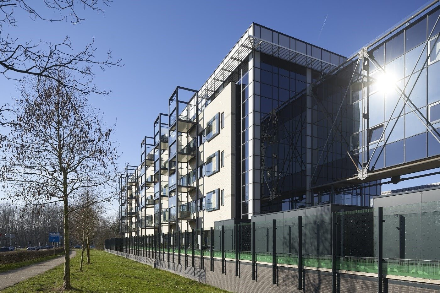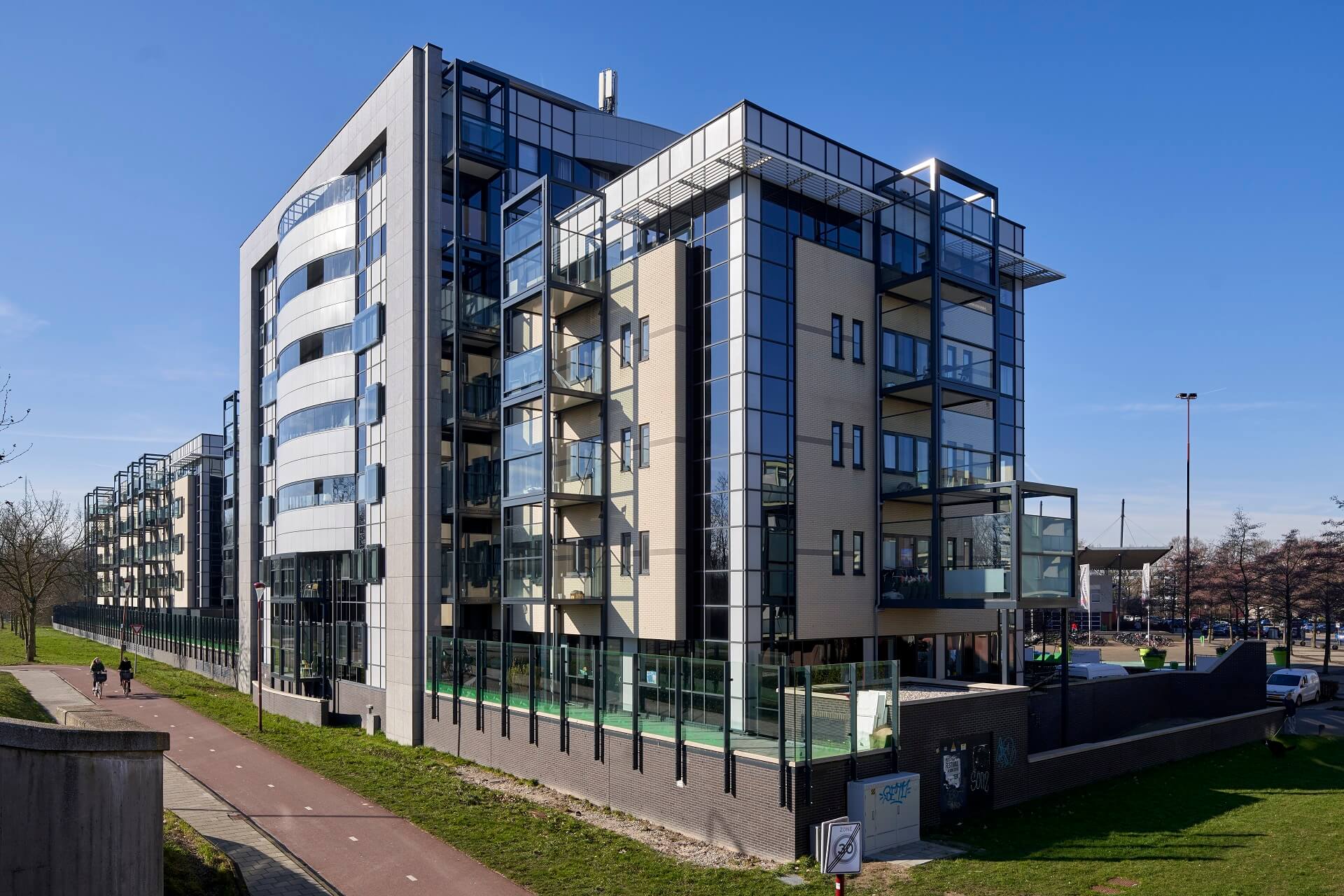 Millenium I en II in Nieuwegein plaatste Metaglas verticale schuiframen in de loggia’s aan de gevel, SilentAIR gevelschermen zodat woningen gespuid