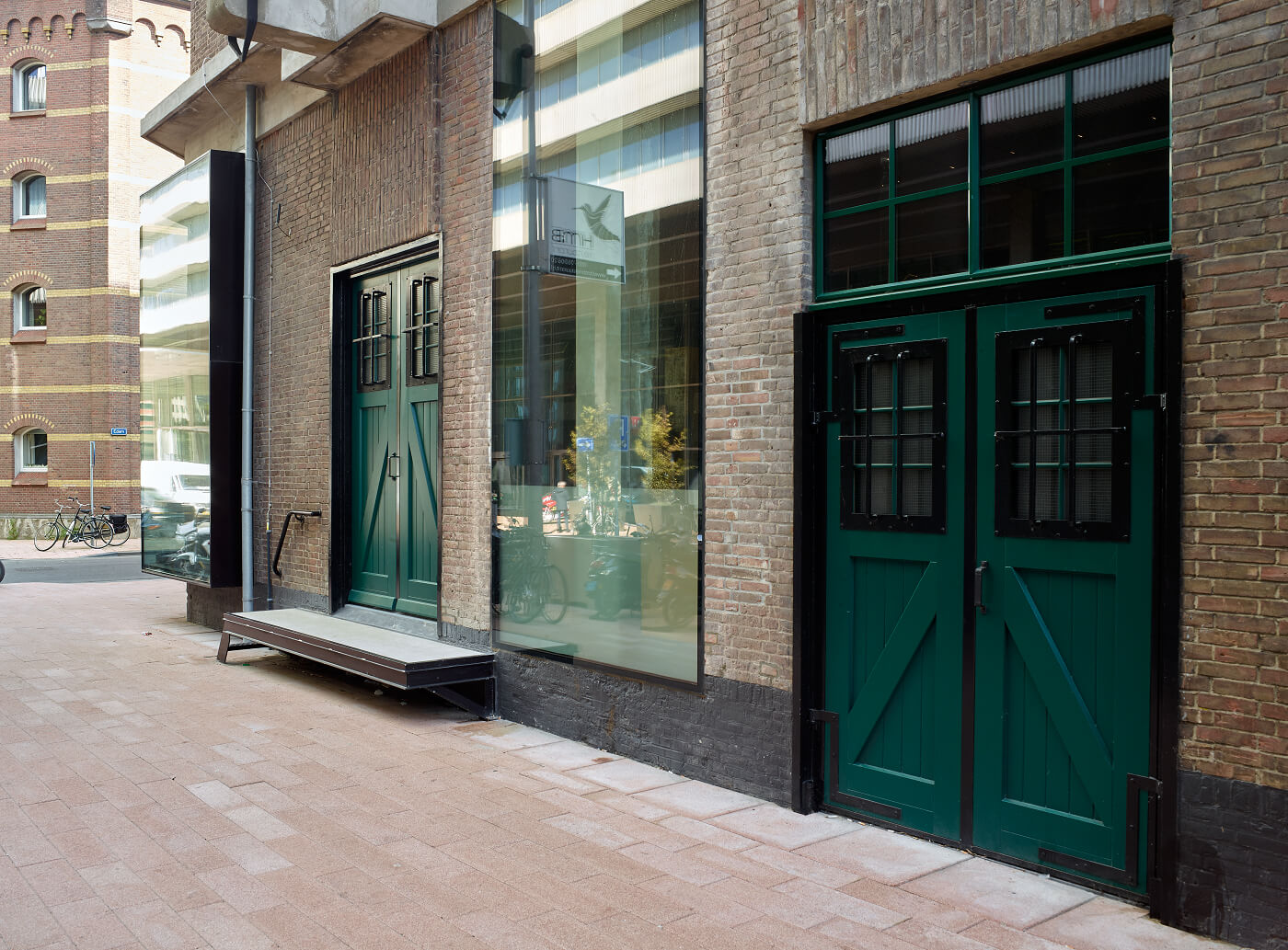 Maar hoe creëer je levendigheid in zo’n gesloten gebouw als een pakhuis? Dat was de opgave waar Verrelst en zijn team voor stonden. Met forse ingrepen in de gevelstructuur en centraal in het gebouw hebben ze het pakhuis letterlijk opengebroken. De nieuwe raampartijen bovenin het gebouw en de gigantische bloemkozijnen op de begane grond spelen daarin een cruciale rol. Over die custom made bloemkozijnen (Metaglas) van maar liefst 4200 mm hoogte en 9200 mm breedte, zegt Verrelst: “We hebben de bloemkozijnen een maat gegeven die past bij de schaal van het gebouw. Ze hangen gedeeltelijk over de gevel, dat gaf ons de kans om een deel van het metselwerk daarachter te behouden. De kozijnen zorgen op die manier voor een genereuze geste.