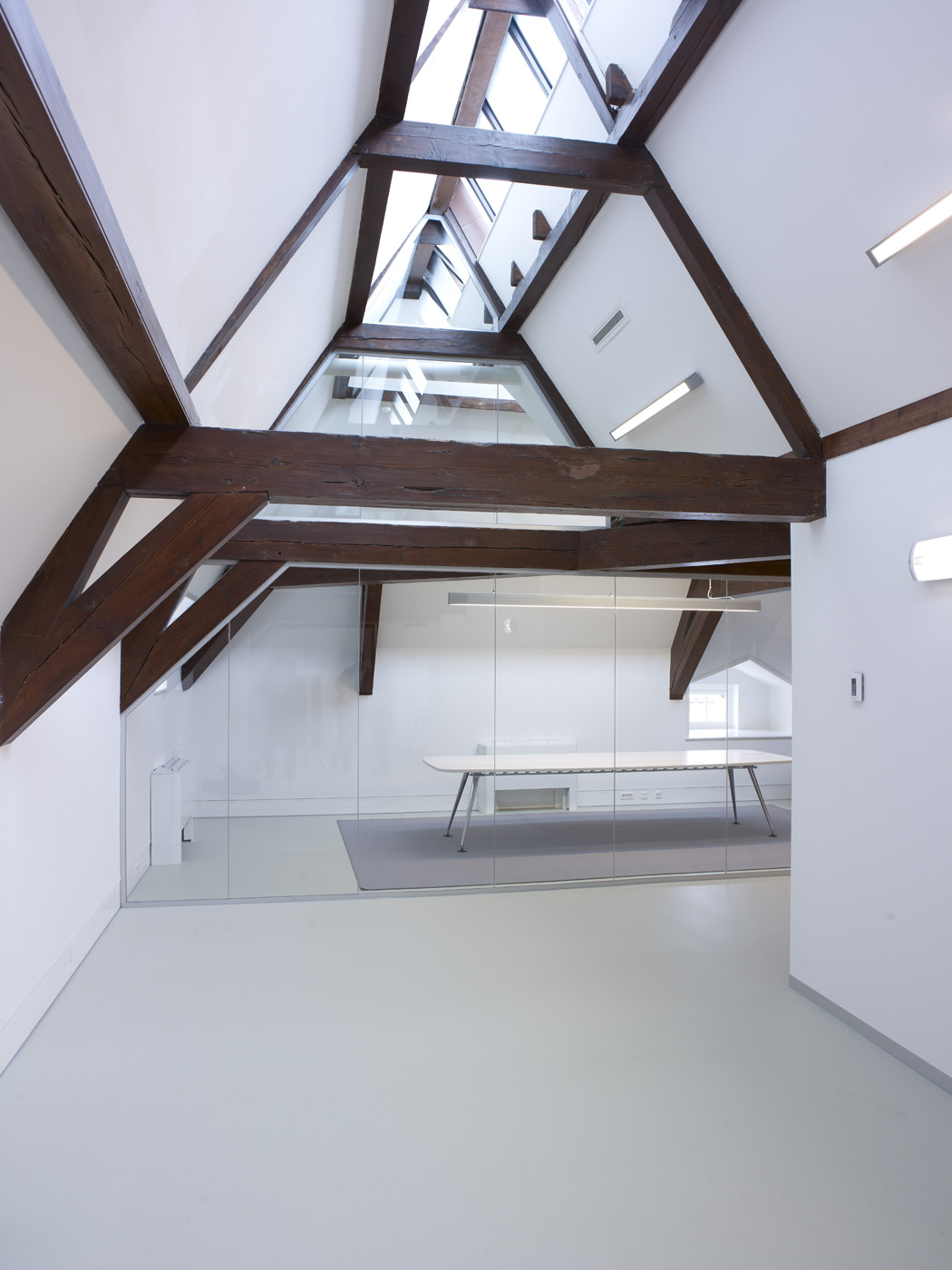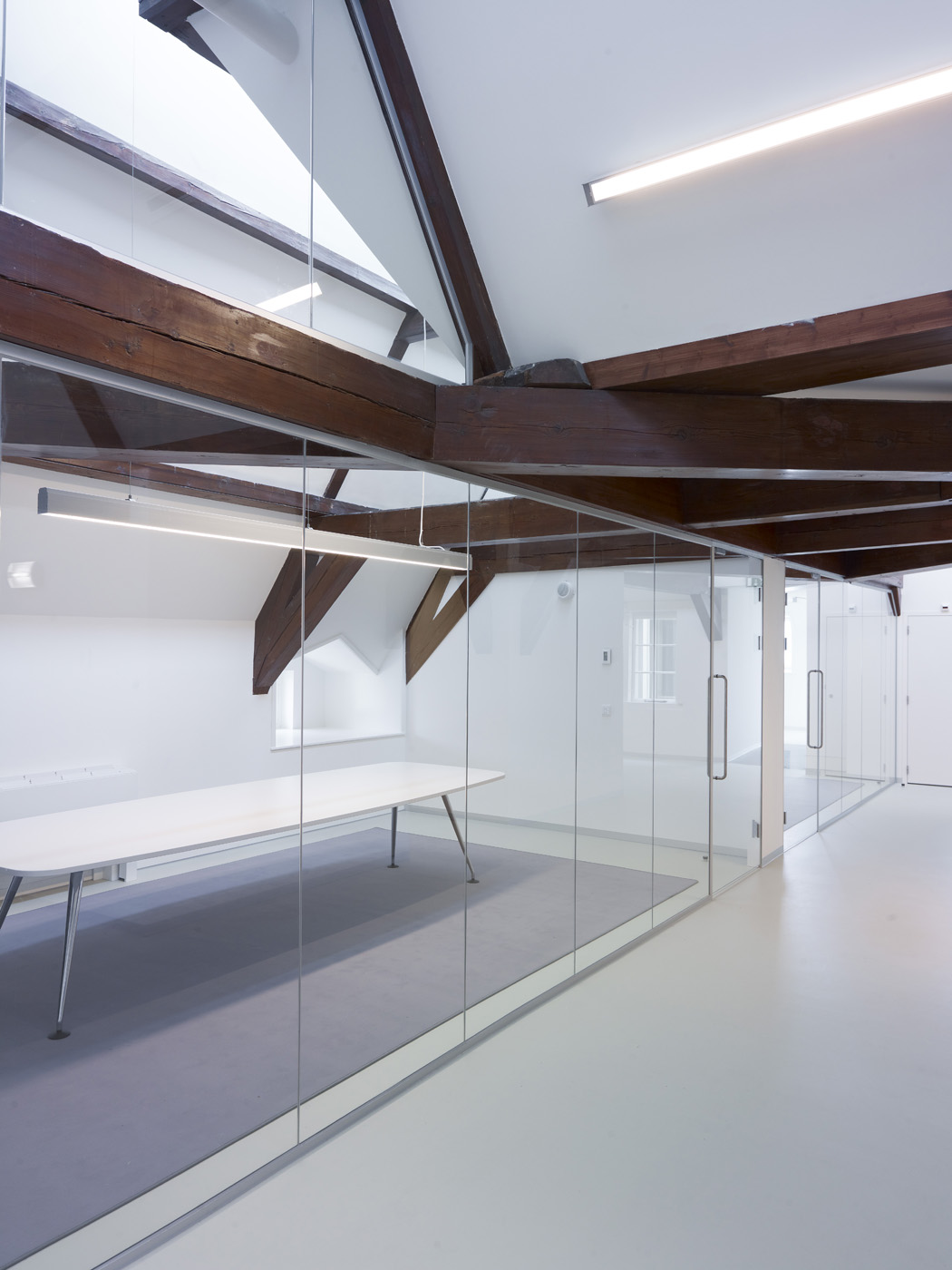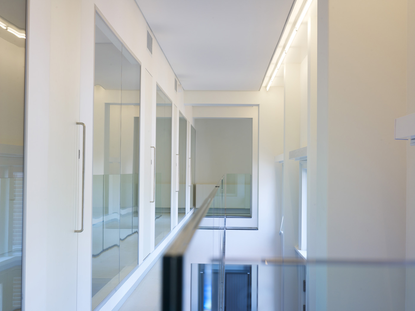 ‘Ontmoeten’ is een belangrijk thema. Nieuwe steektrappen tussen niveauverschillen, transparante vides en een centraal restaurant leggen nieuwe verbindingen. Ook in de zittingzalen komen mensen samen. In een rechtbank is er altijd een scheiding tussen publiek (voor bezoekers) en beveiligd gebied (voor juridische medewerkers). De neutrale inrichting is in dat kader een heel bewuste keuze. ‘In het civiele recht speelt mediation een belangrijke rol. Het is dus niet de bedoeling om, zoals in het strafrecht, ontzag in te boezemen, maar om beide partijen op hun gemak en bij elkaar te brengen. Daar past soberheid en eenvoud bij.’ Uiteindelijk was er volgens Bakers ‘geen kunst aan’ om de oude situatie te verbeteren. ‘Omdat we verantwoordelijk waren voor zowel grote technische ingrepen als het interieur, konden we vanuit de hoofdstructuur doordringen tot in het kleinste detail. Ik geloof dat we de intrinsieke kwaliteiten van de gebouwen weer hebben blootgelegd.’