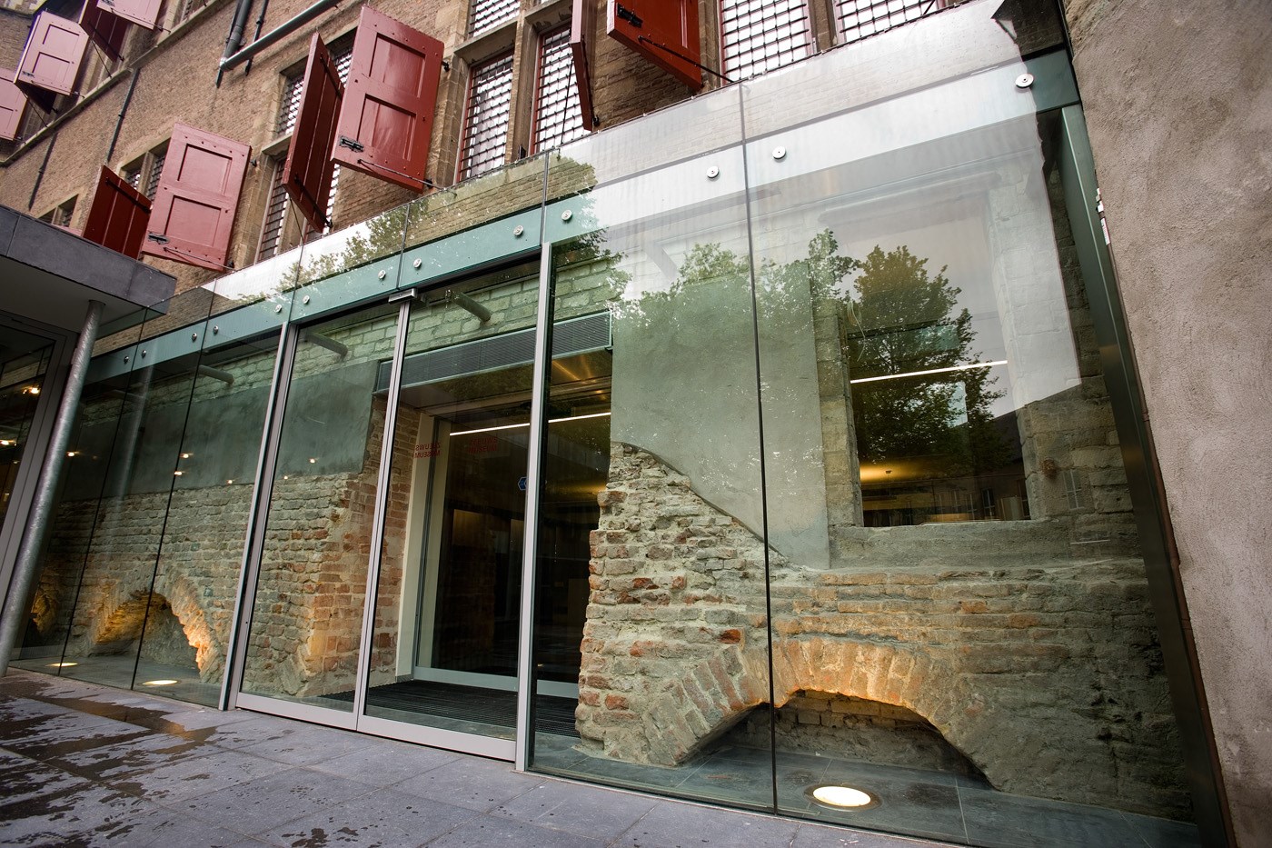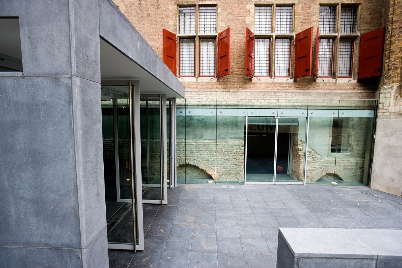 Dat de keuze uiteindelijk viel op een minder opvallend souterrain, had echter ook nog een andere reden. Westenburger: ‘Er zijn vijf expositieniveaus. Voorheen kwam je op de begane grond binnen en had je zowel onder je als boven je tentoonstellingsruimtes. Nu begin je op een logische plaats: onderin.’ En op een plek die aansluit bij het aangrenzende Abdijplein: ‘Het plein loopt af. Daarom zijn in de bestrating de nodige stoepen toegepast. Die hebben we in de architectuur doorgezet, zonder overigens de transparantie uit het oog te verliezen: glas speelt een hoofdrol.’