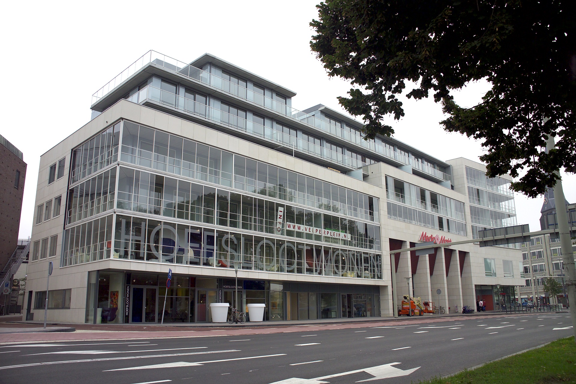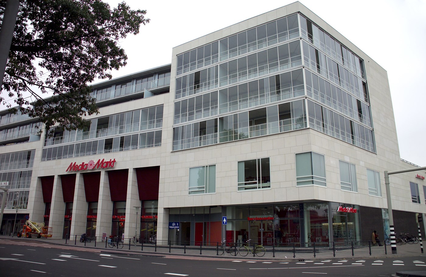 De benedenverdieping met de commerciële ruimten onderging de minste veranderingen. Een bijzonder detail komt de uitstraling ten goede: de vestiging van ‘elektronicasupermarkt’ Media Markt, die in de woorden van Van Ede ‘toch weinig ramen nodig heeft’, ligt deels achter een plint van winkels met aantrekkelijke etalages.