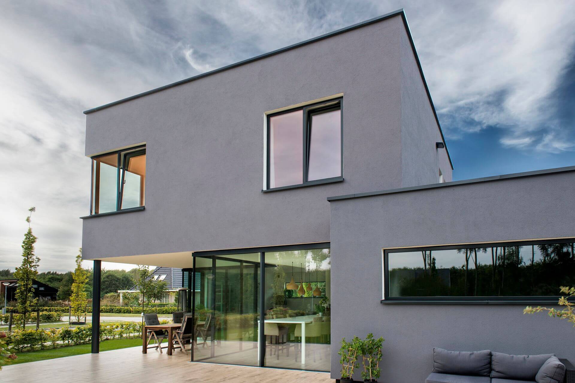 profilering van deze producten zie je voornamelijk glas’, licht Nobbenhuis de keuze toe. ‘Van buiten bekeken vallen de profielen door hun antracietgrijze kleur soms helemaal weg, in de schaduw van de negge of tegen de donkerte in de woning.’