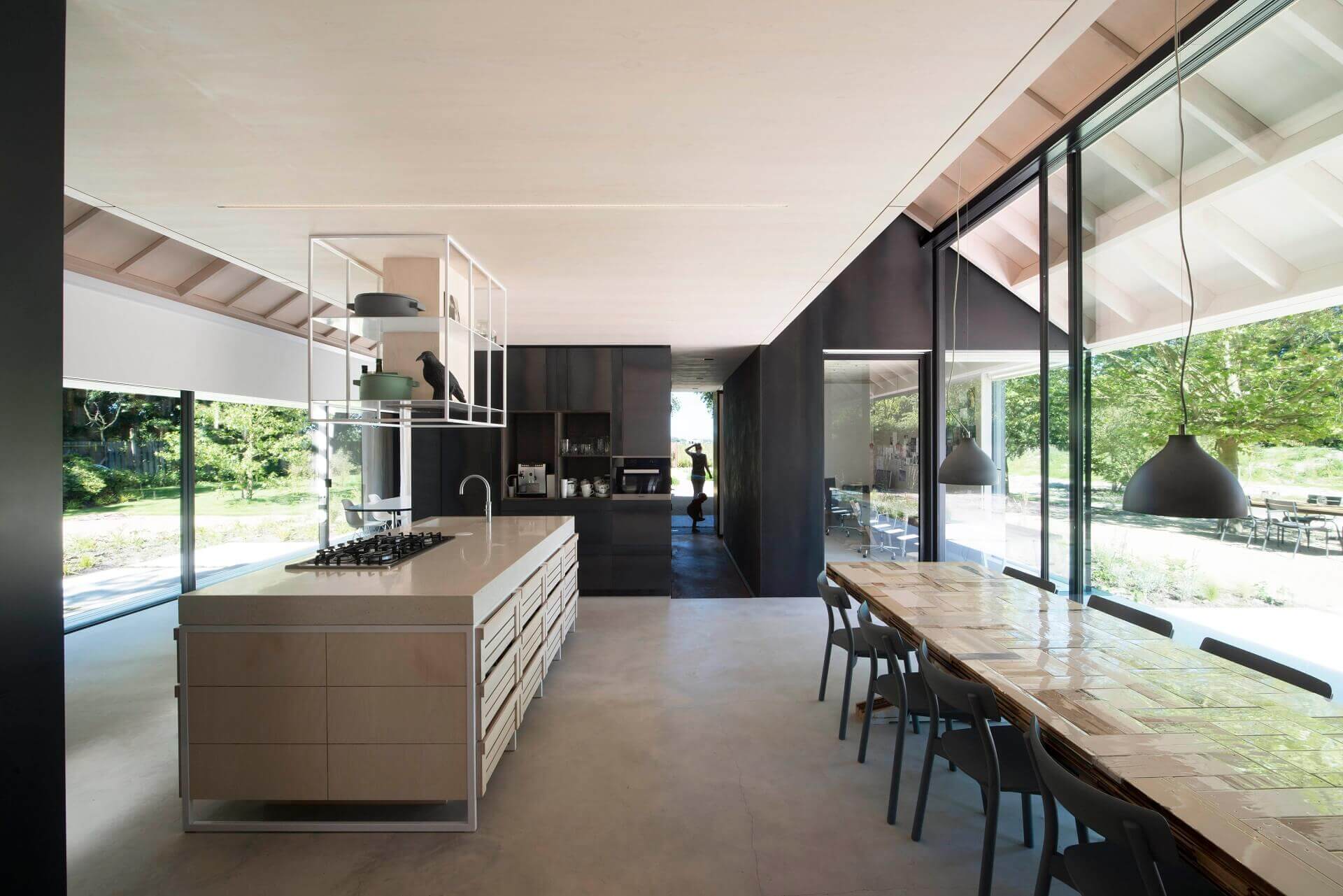 Studio PROTOTYPE ontwierp de villa voor de van oorsprong Amsterdamse bewoners. Zij hadden volgens architect Jeroen Spee een ‘uitgesproken idee’ over hoe ze wilden leven. ‘Ze zochten de combinatie wonen, werken en leven. Belangrijk is de fraaie afwisseling en natuurlijke verbinding tussen de verschillende ruimtes, die zowel royaal als compact zijn, en open en gesloten. Tussen deze volumes is een open ruimte gecreëerd, die van binnen naar buiten doorloopt en aansluit op een grote veranda.’