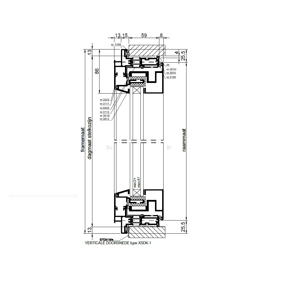 Methermo XL stolp-draaikiepramen zijn er in verschillende uitvoeringen, onderstaande weergave is van type XSDK-1.