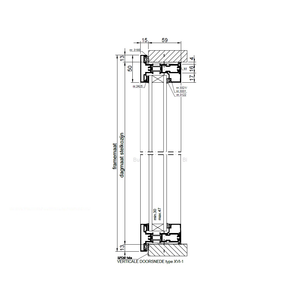 Methermo XL vaste ramen zijn er in verschillende uitvoeringen, onderstaande weergave is van type XVI-1.