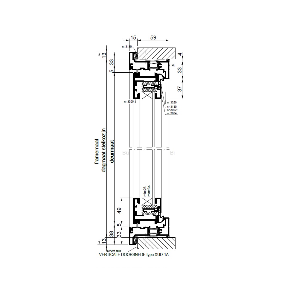 - geïsoleerd aluminium kozijn van profiel nr. 3329